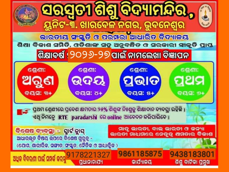 Saraswati Sishu Vidya Mandir, Kharavelnagar, Unit-3, Bhubaneswar was established